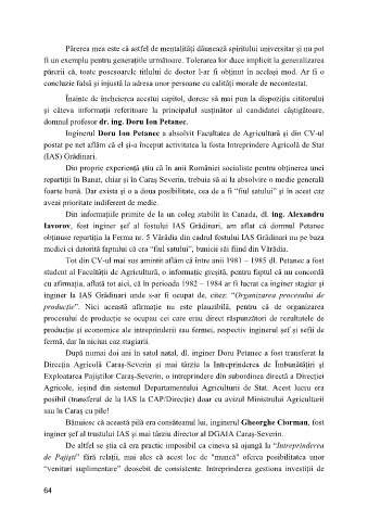 Inginerul Doru Ion Petanec a absolvit Facultatea de Agricultură şi din CV-ul