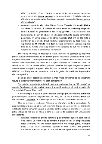 were obtained after 10-min exposure in the magnetic field.“ („Valorile cele mai
