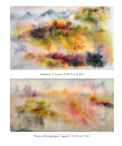 Gebirgssee │ Aquarell │ 48x75 cm │ 2011 Wiese mit Baumgruppe │ Aquarell │ 31x59 cm │ 2011 132