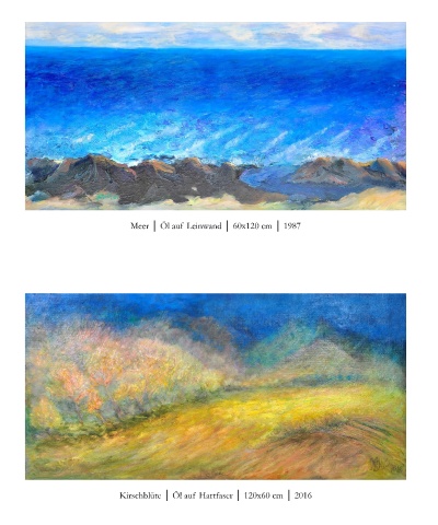 Meer │ Öl auf Leinwand │ 60x120 cm │ 1987 Kirschblüte │ Öl auf Hartfaser │ 120x60 cm │ 2016 75