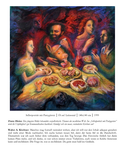 Franz Heinz : Ihre jüngsten Bilder behandeln sozialkritische Themen der westlichen Welt. Im „Selbstporträt mit Partygästen“